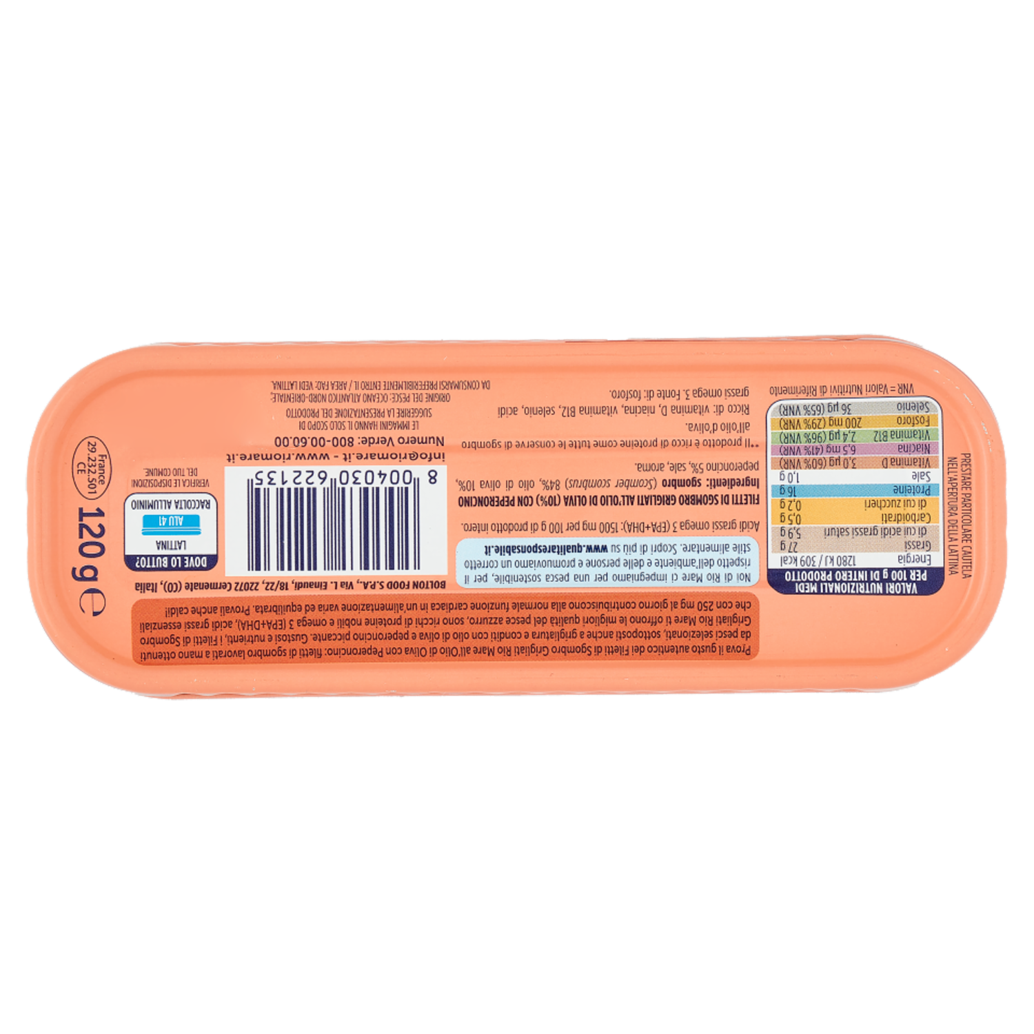 Rio mare Filetti di Sgombro all'Olio di Oliva con Peperoncino Piccante Grigliati* 120 g